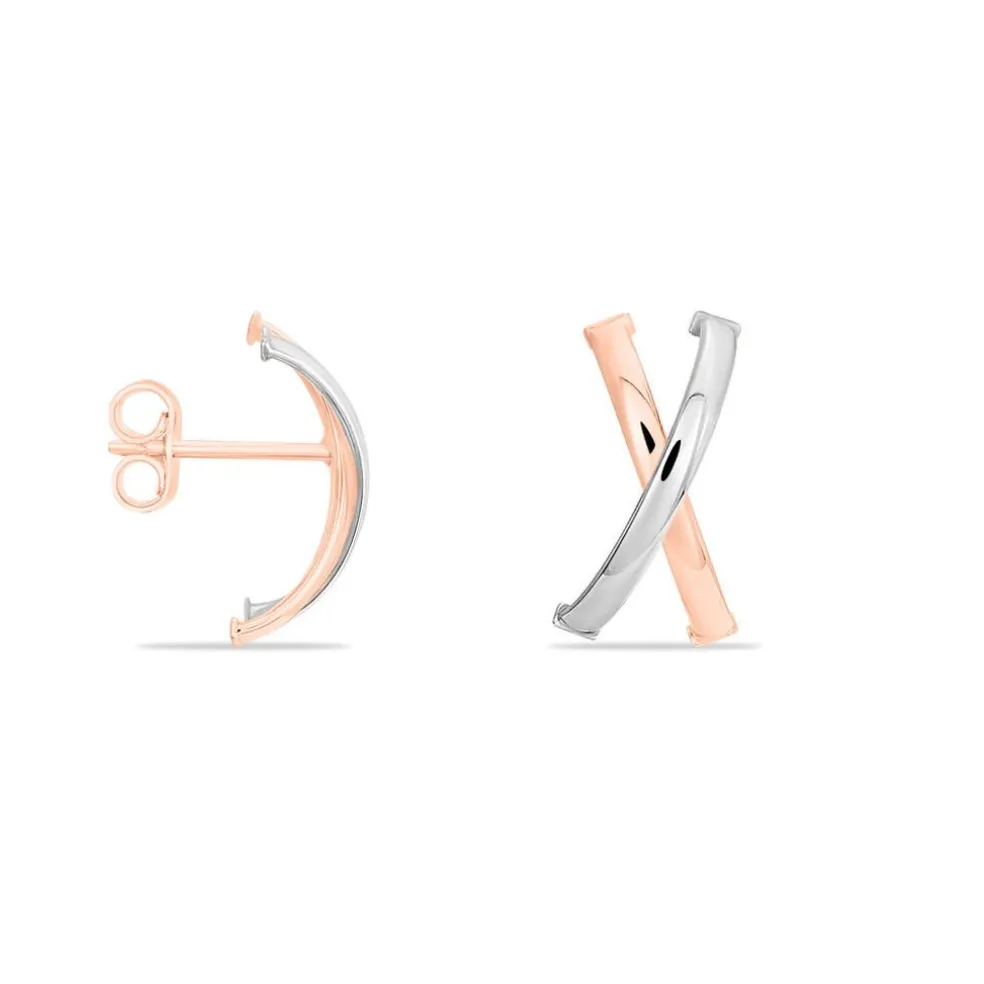 Demi Creoles Or Bicolore Rose Et Blanc 375/1000 Croisees Bicolore Diametre 15mm