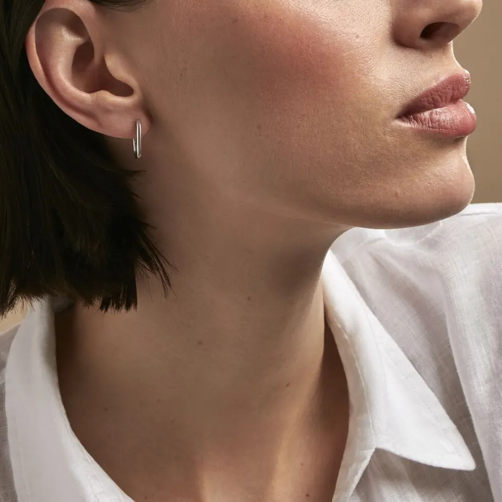 Creoles Argent Blanc 925/1000 Rectangulaires Diametre 11*8mm