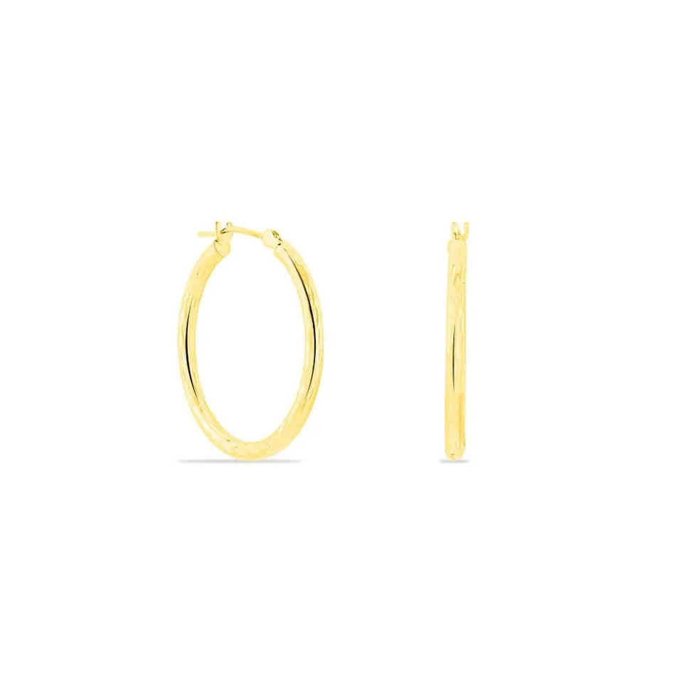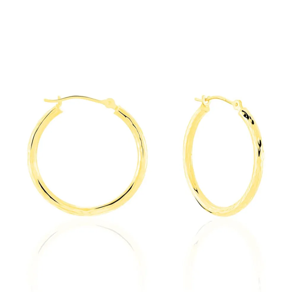 Créoles Or Jaune 375/1000 Fil Rond Effet Diamanté Largeur 2mm Diamètre 20mm