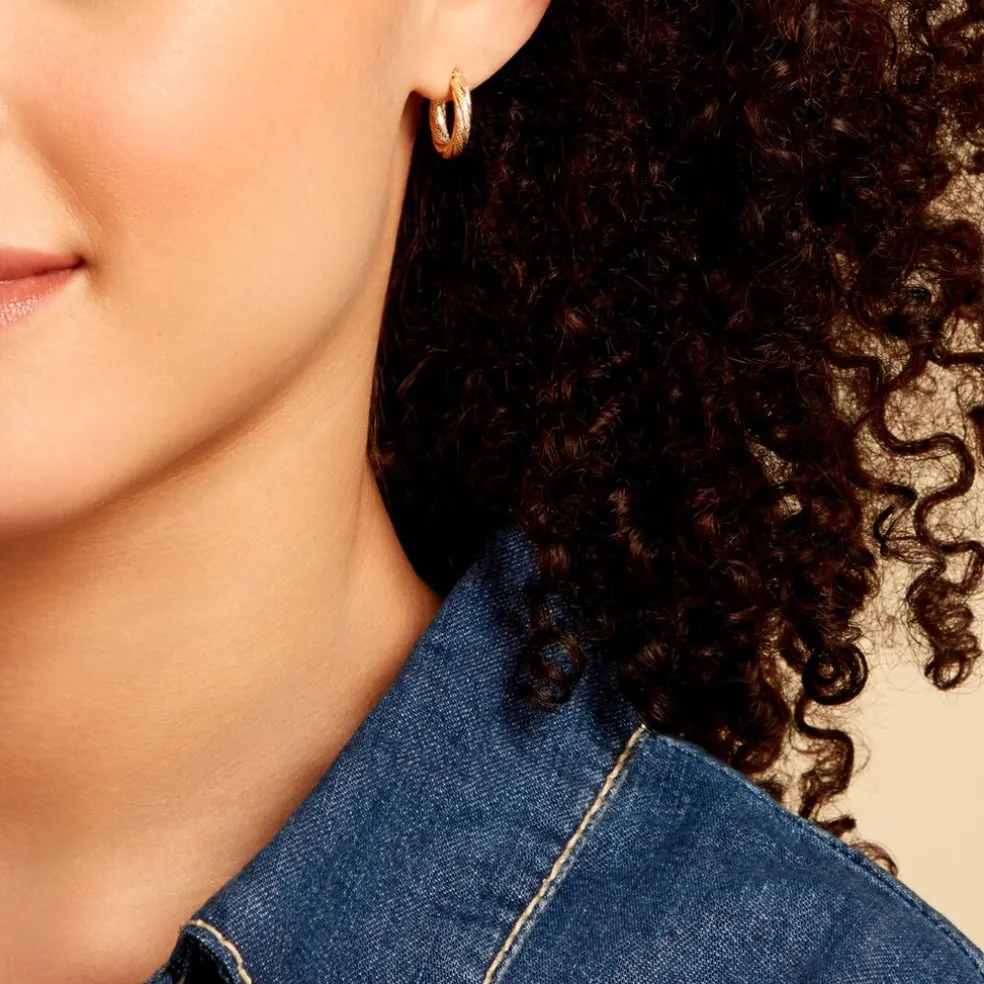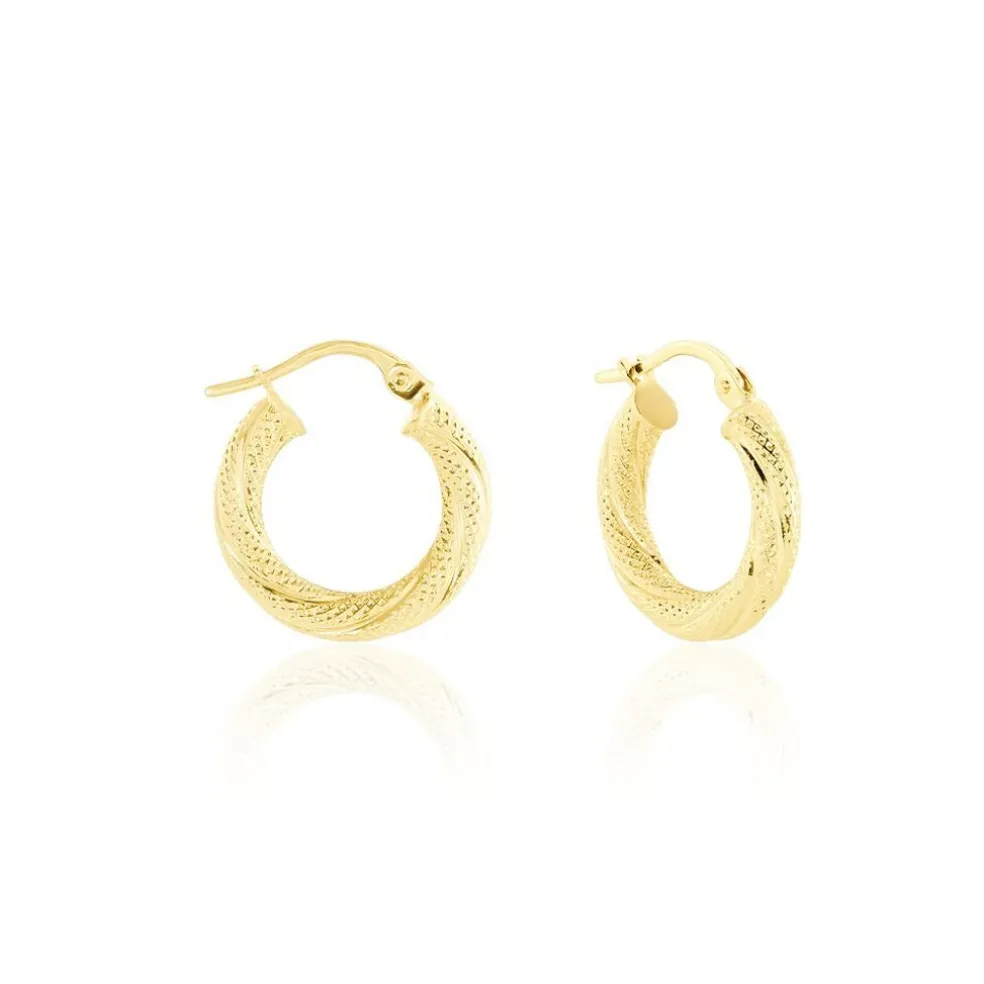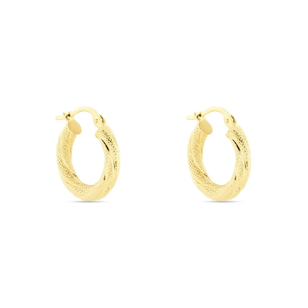 Creoles Or Jaune 375/1000 Fil Rond Torsadé Effet Piqueté Diamètre 10mm