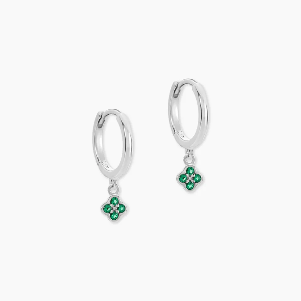 Créoles Argent Blanc 925/1000 Pampilles Fleurs Pierres Vertes Diametre 10Mm