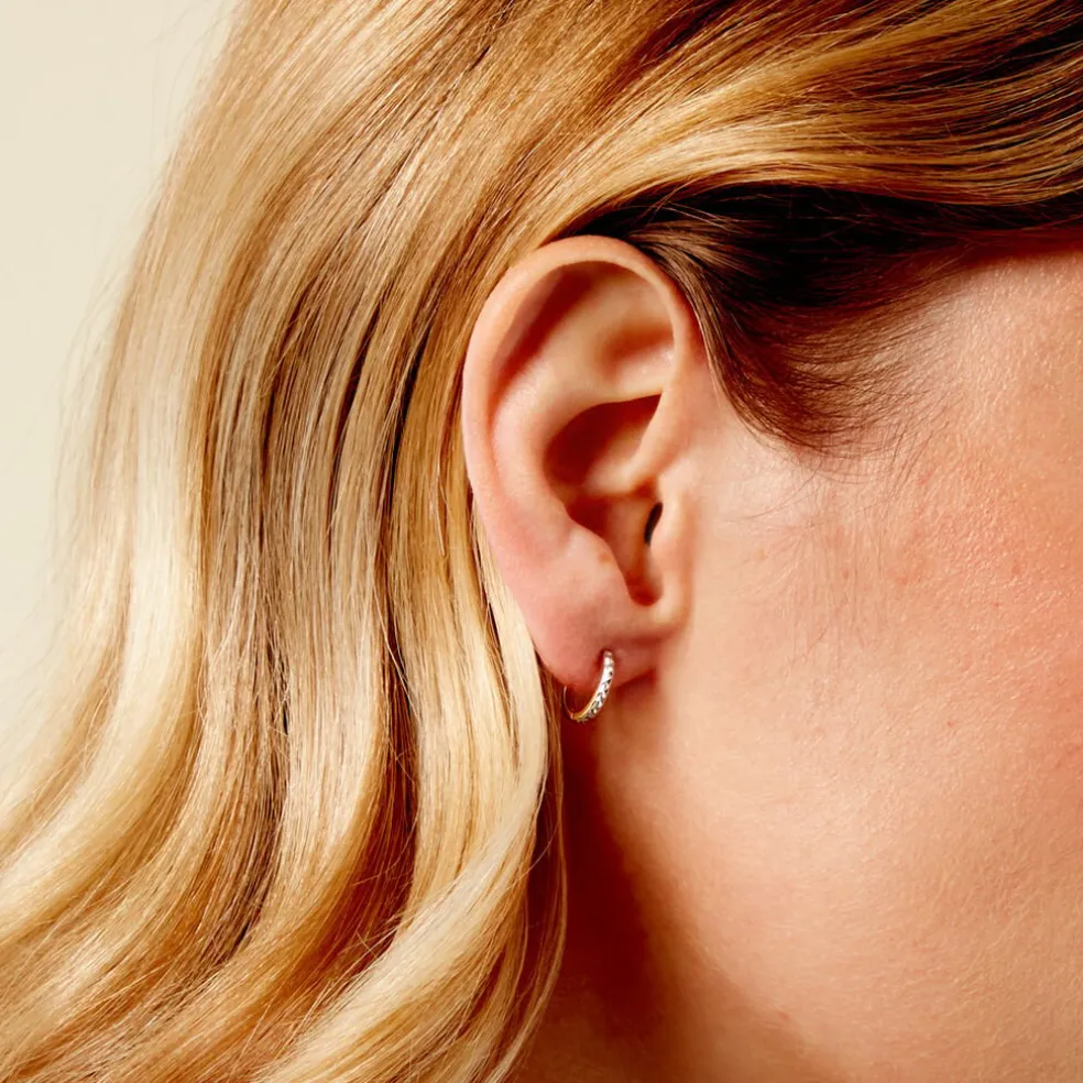 Mini Créoles Or Bicolore 375/1000 Diamante Largeur De Fil 1Mm Diametre 8Mm