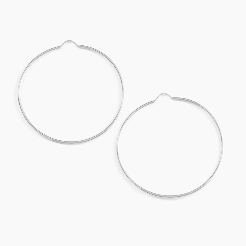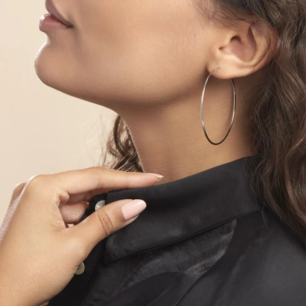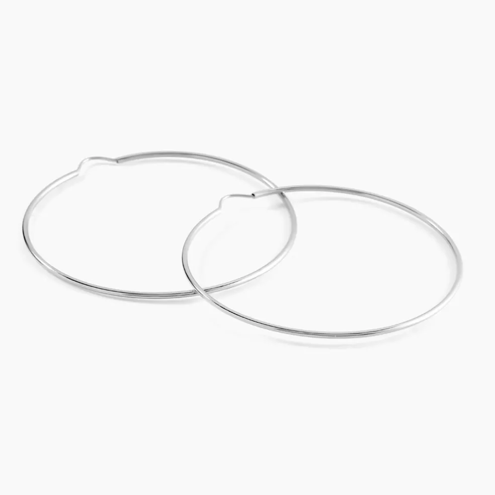 Créoles Or Blanc 375/1000 Fil Flexible Lisse Largeur 1.2mm Diamètre 50mm