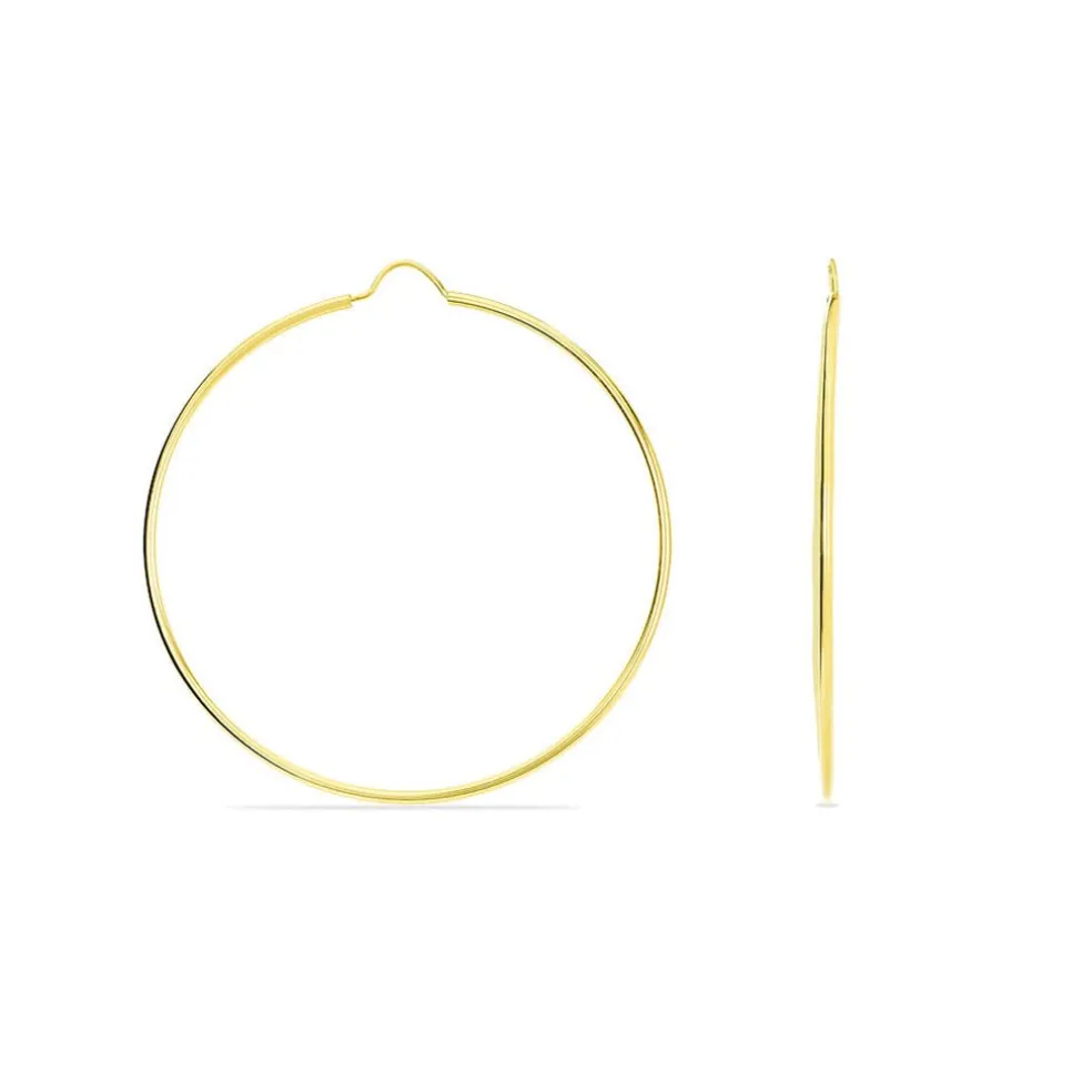 Créoles Or Jaune 375/1000 Fil Flexible Lisse Largeur 1.2mm Diamètre 50mm