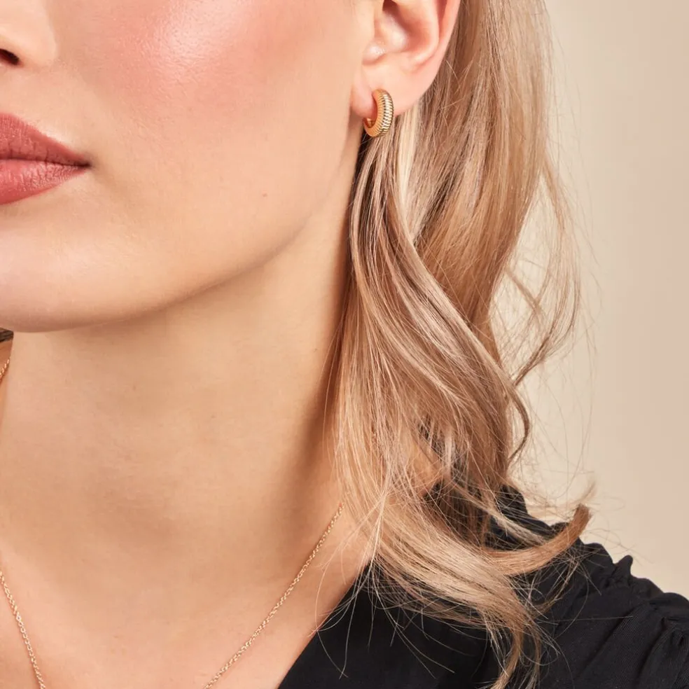 Créoles Plaqué Or Jaune Ouvertes Striées Diamètre 15mm