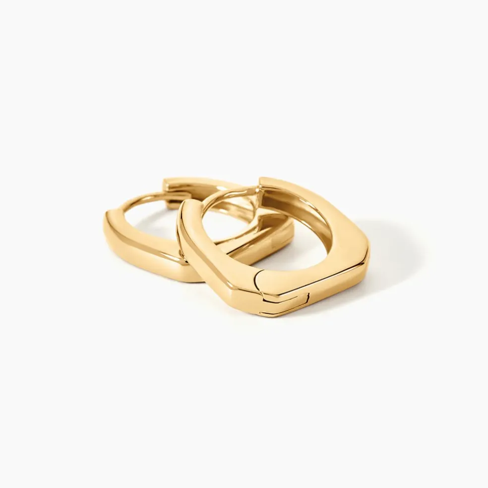 Creoles Or Jaune 375/1000 Lisses Forme Carree Interieur Rond Diametre 11,6Mm