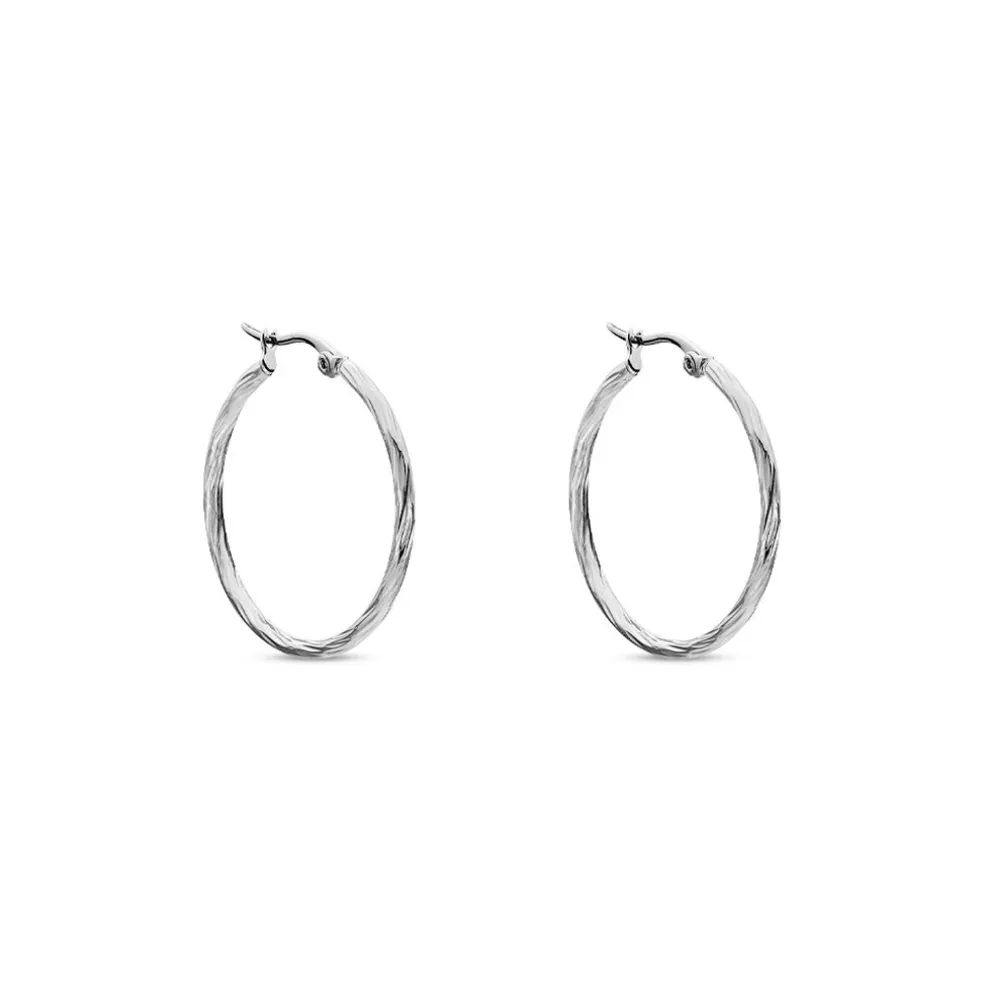 Créoles Acier Blanc Effet Strié Diamètre 30mm