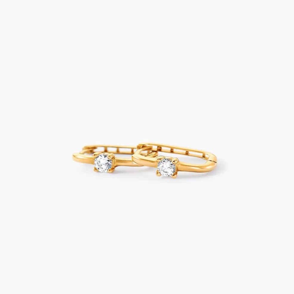 Creoles Or Jaune 375/1000 Rectangles Avec 1 Oxyde De Zirconum Serti Griffes 12mm