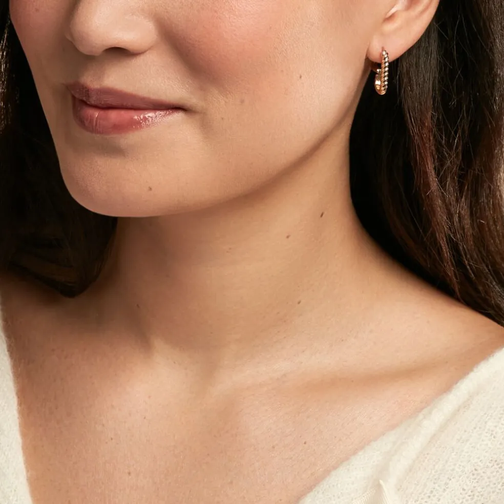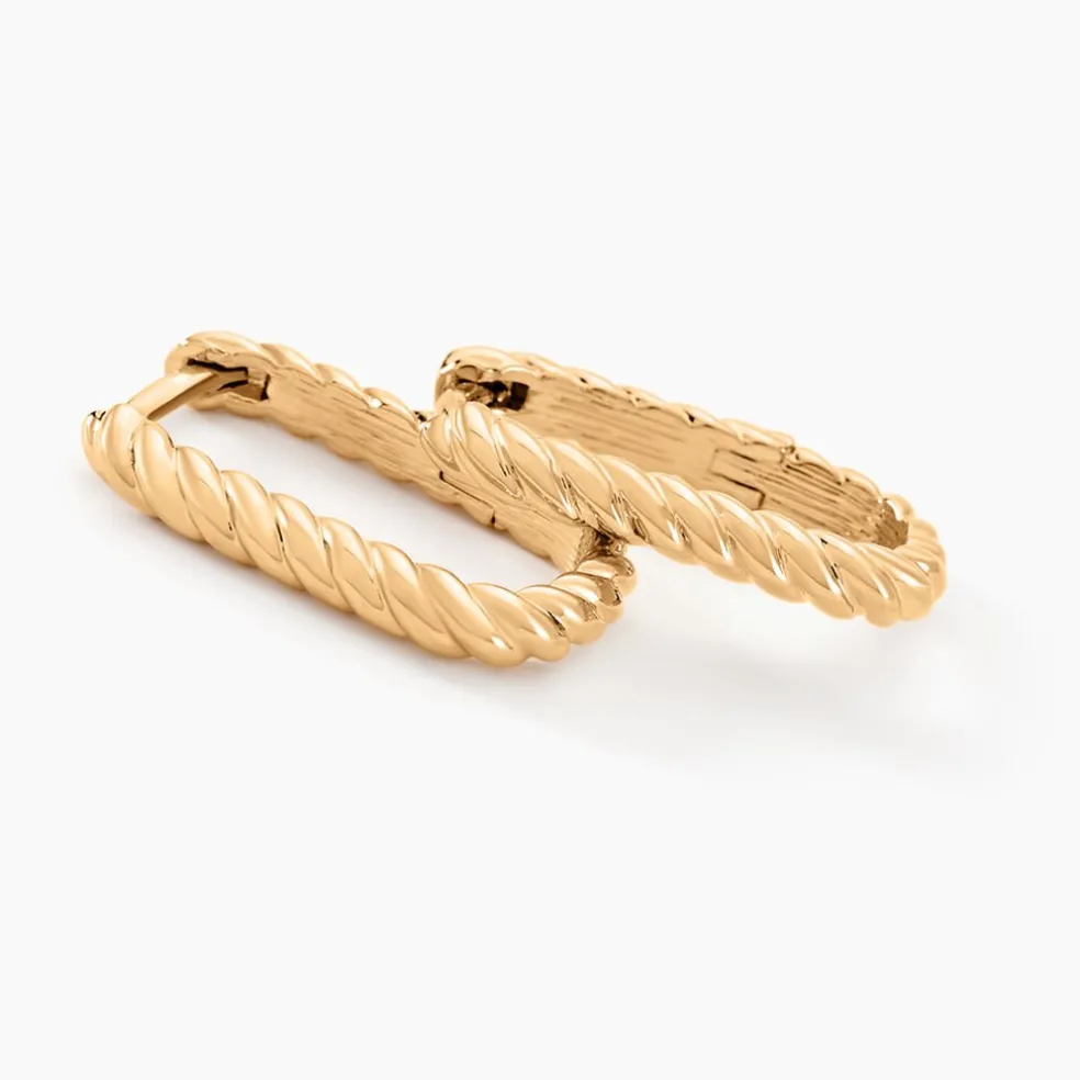 Créoles Plaqué Or Jaune Rectangulaires Effet Torsadé Diamètre 19*12mm