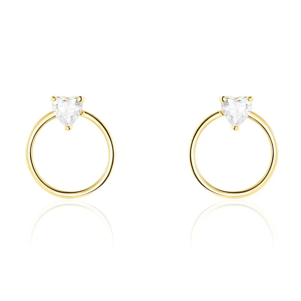 Créoles Or Jaune 375/1000 Coeur Oxydes De Zirconium Serti Griffes