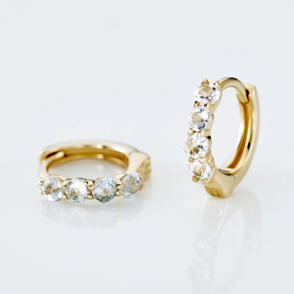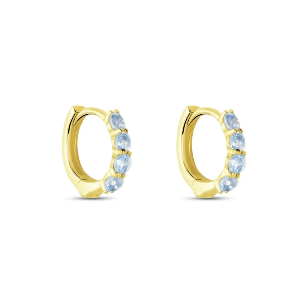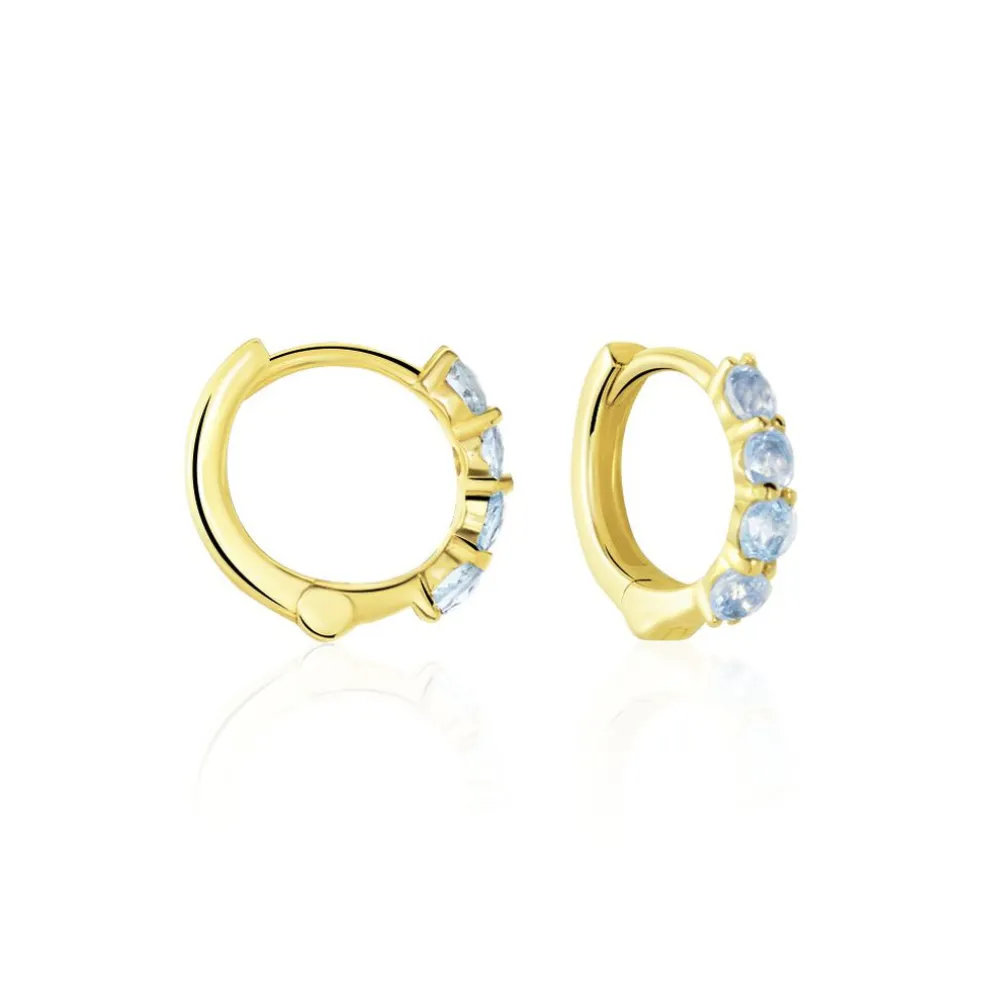 Créoles Or Jaune 375/1000 8 Topazes Sky Blue Serti Griffes 10mm