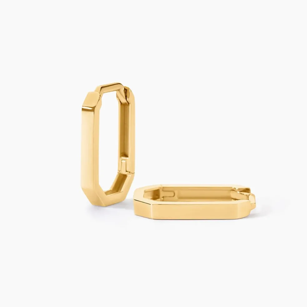 Creoles Or Jaune 375/1000 Fil Carre Lisse Octogonales 15Mm
