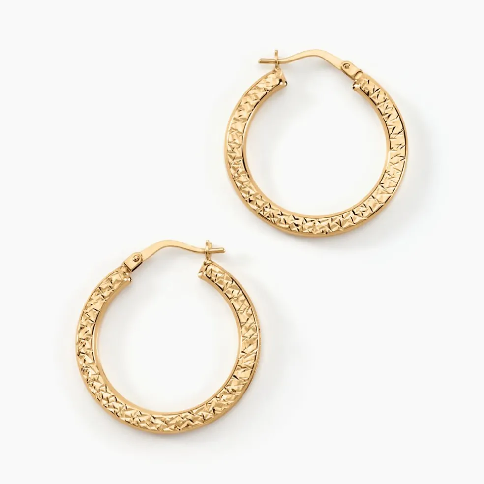Creoles Or Jaune 375/1000 Fil Carre Ronde Diamanté Et Satine Diamètre 25mm