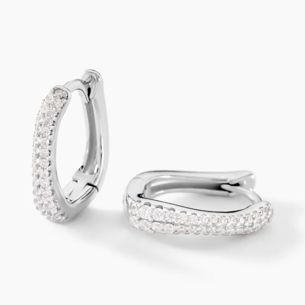 Créoles Argent Blanc 925/1000 Formes Organiques Pavage Oxydes De Zirconium Diamètre 7mm