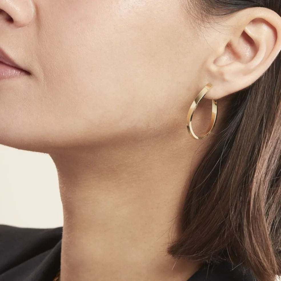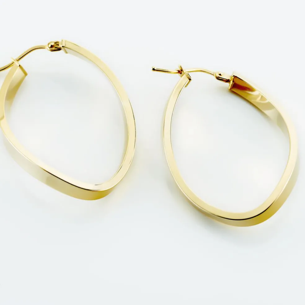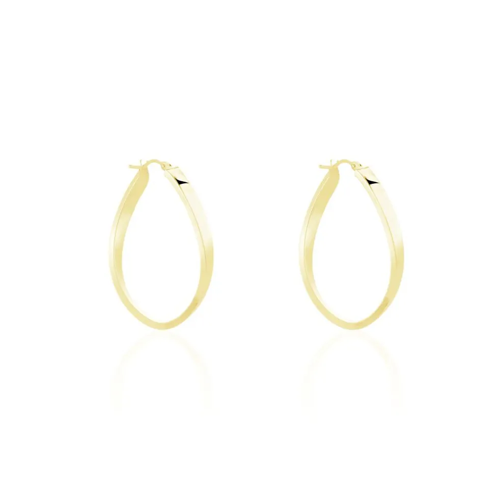 Créoles Or Jaune 375/1000 Forme Vague Fil Carre Lisse Epaisseur 2mm Diamètre 30mm