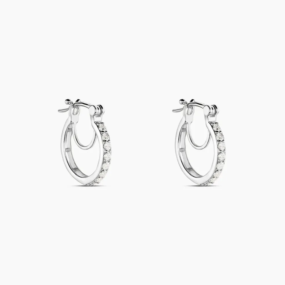 Créoles Argent Blanc 925/1000 Cercle Oxyde De Zirconium Serti Griffes 15mm