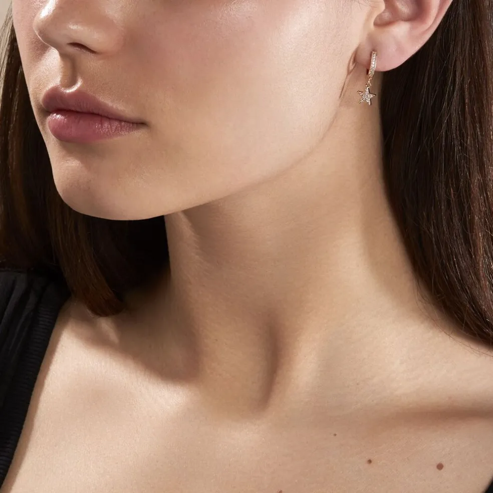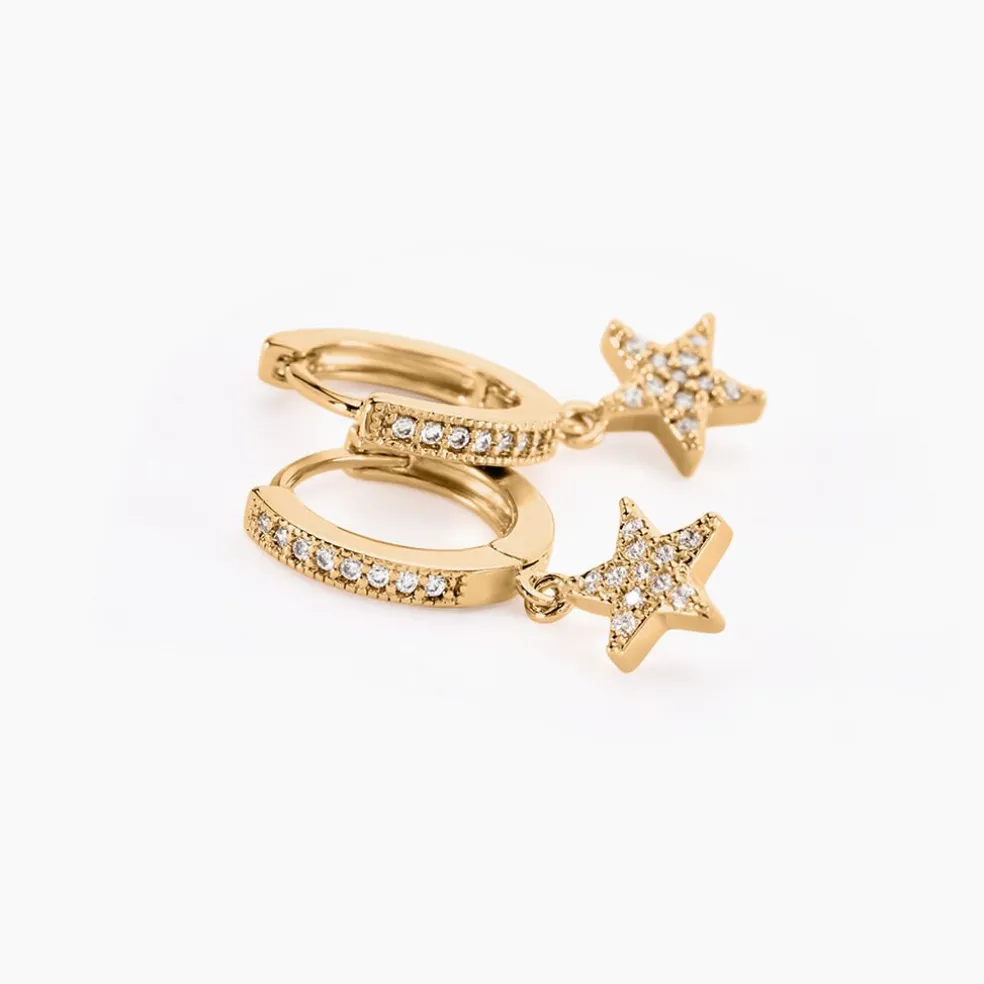 Creoles Plaqué Or Jaune Pavage Oxydes De Zirconium Pampilles Etoiles Diametre 13mm