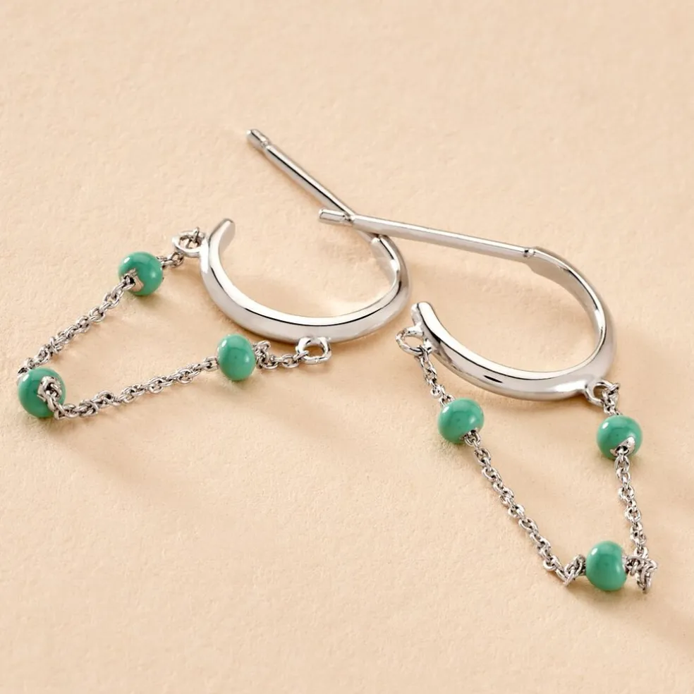 Créoles Argent Blanc 925/1000 Email Vert D’eau Maille Forçat 4.3cm Diamètre 8mm