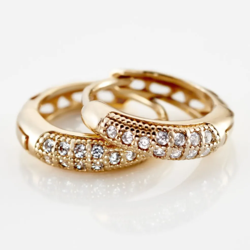 Créoles Plaque Or Pavage Oxydes De Zirconium Diamètre 8mm