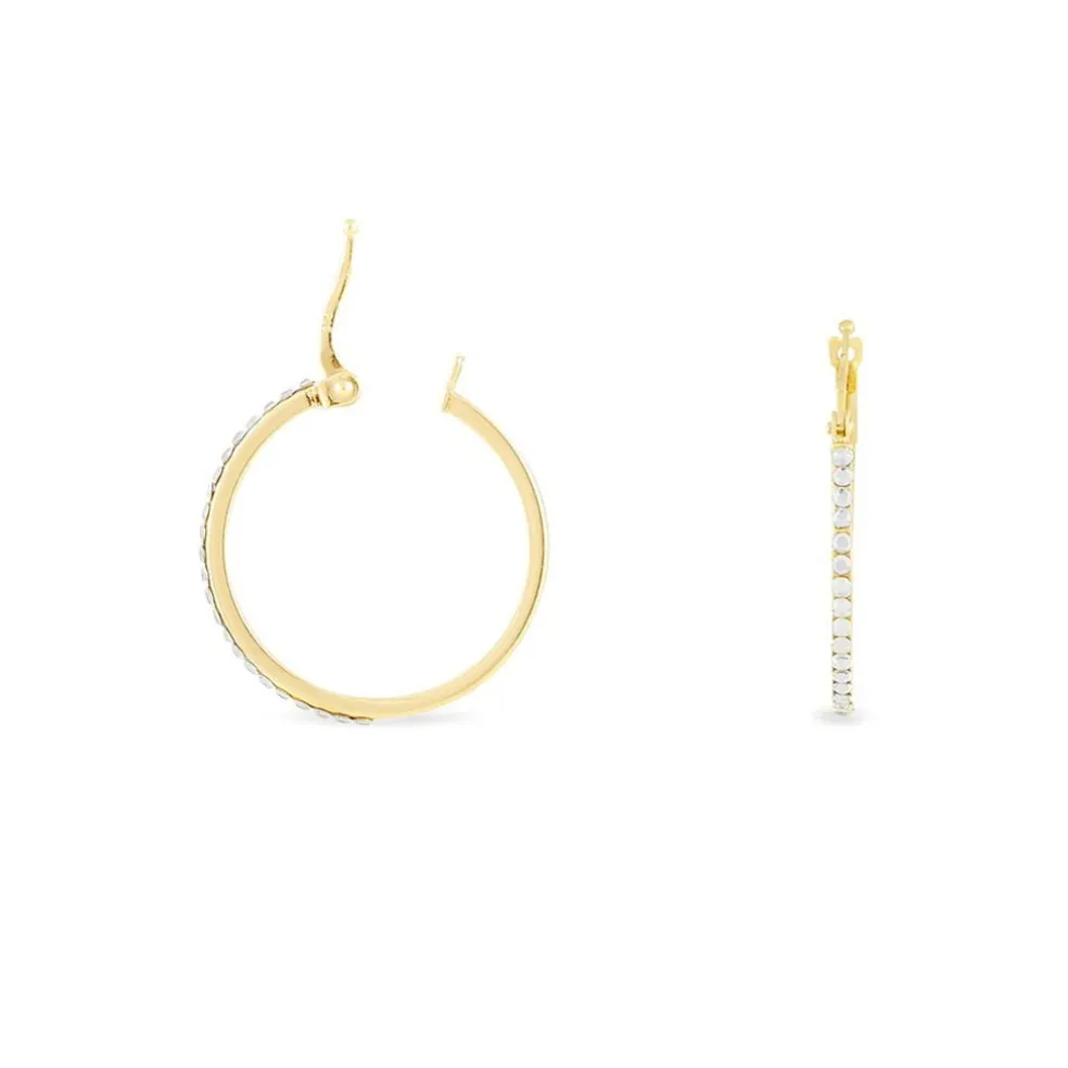 Créoles Or Jaune 375/1000 Fil Carré Strass Largeur 2mm Diamètre 20mm