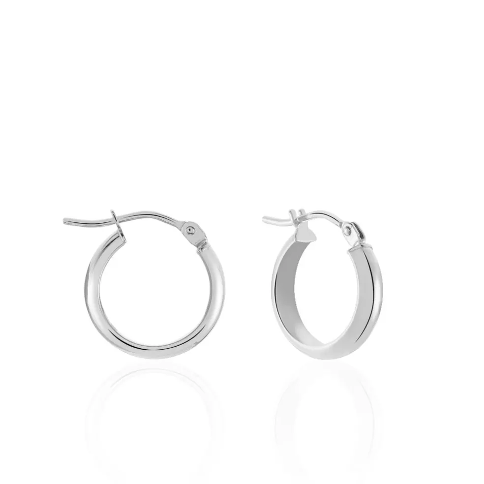 Créoles Or Blanc 375/1000 Fil Demi Jonc Lisse Largeur 3mm Diamètre 10mm