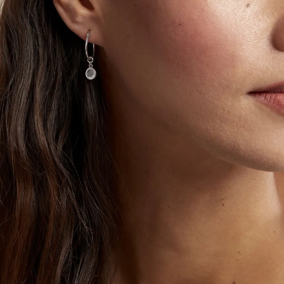 Créoles Argent Blanc 925/1000 Pastilles Effet Perle Diametre 13mm