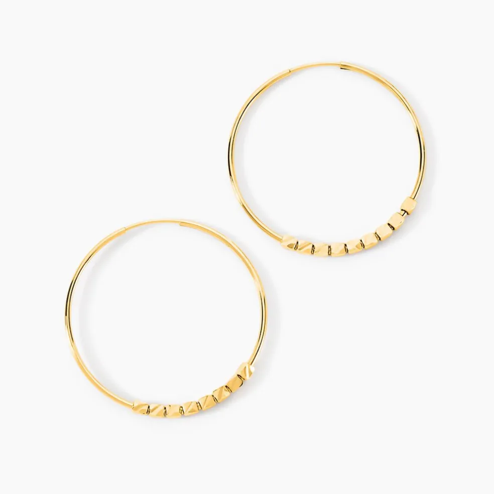 Créoles Or Jaune 375/1000 Flexibles Ornement Carré Largeur De Fil 1Mm Diametre 30Mm