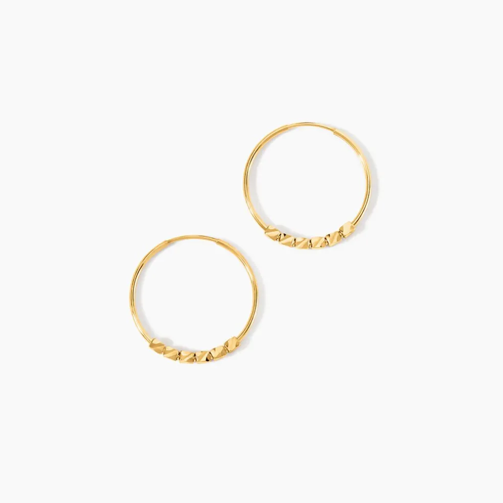 Créoles Or Jaune 375/1000 Flexibles Ornement Carré Largeur De Fil 1Mm Diametre 20Mm