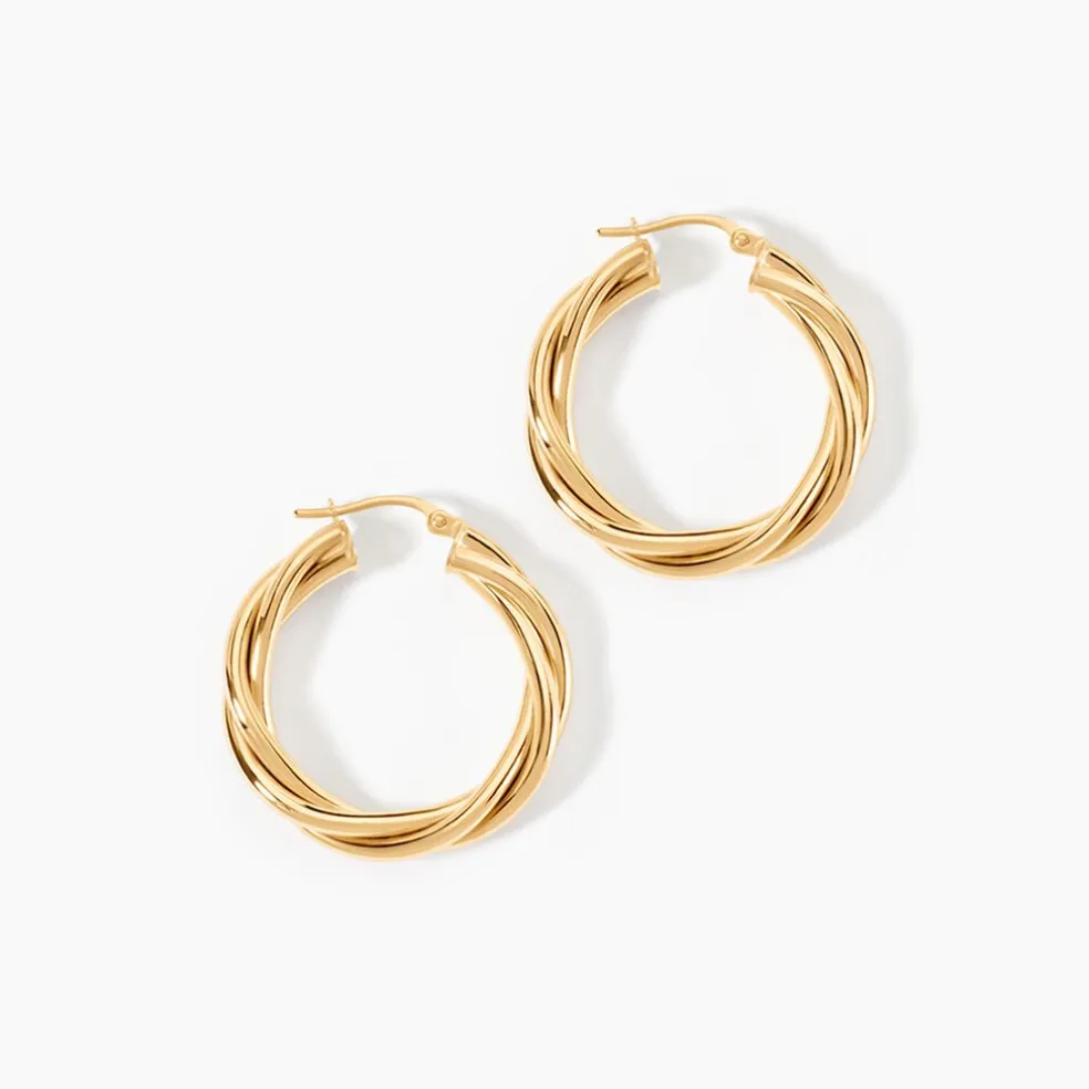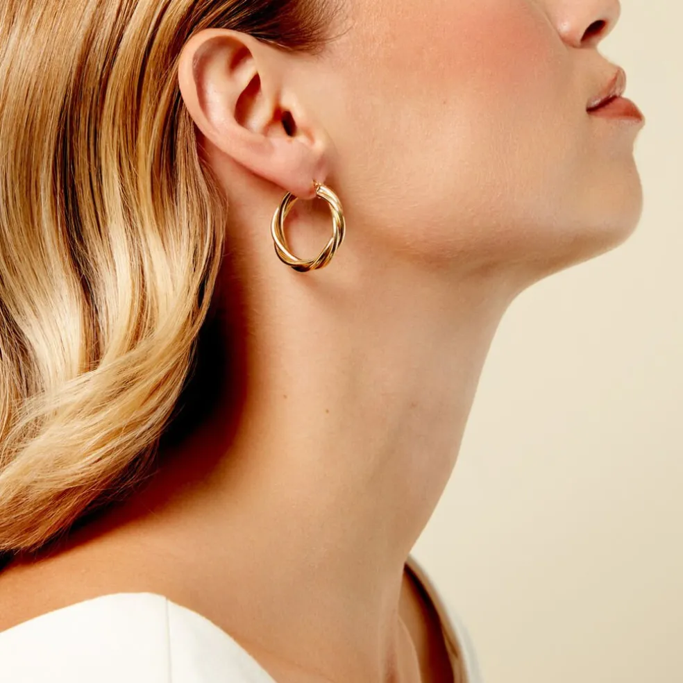 Créoles Or Jaune 750/1000 Torsadée Largeur De Fil 4Mm Diametre 20Mm