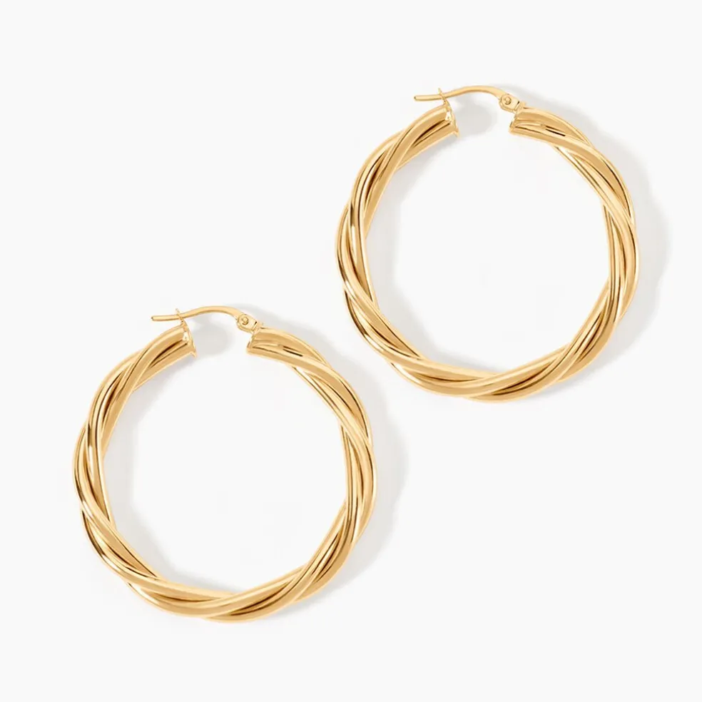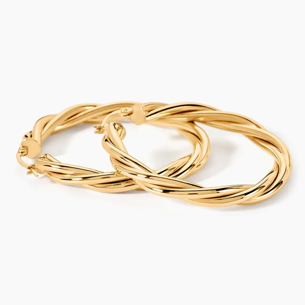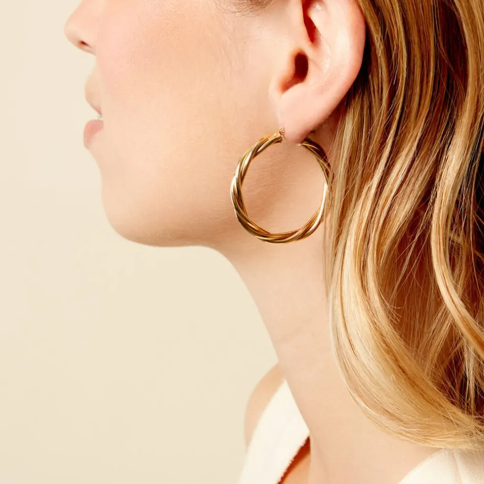 Créoles Or Jaune 750/1000 Torsadée Largeur De Fil 4Mm Diametre 30Mm