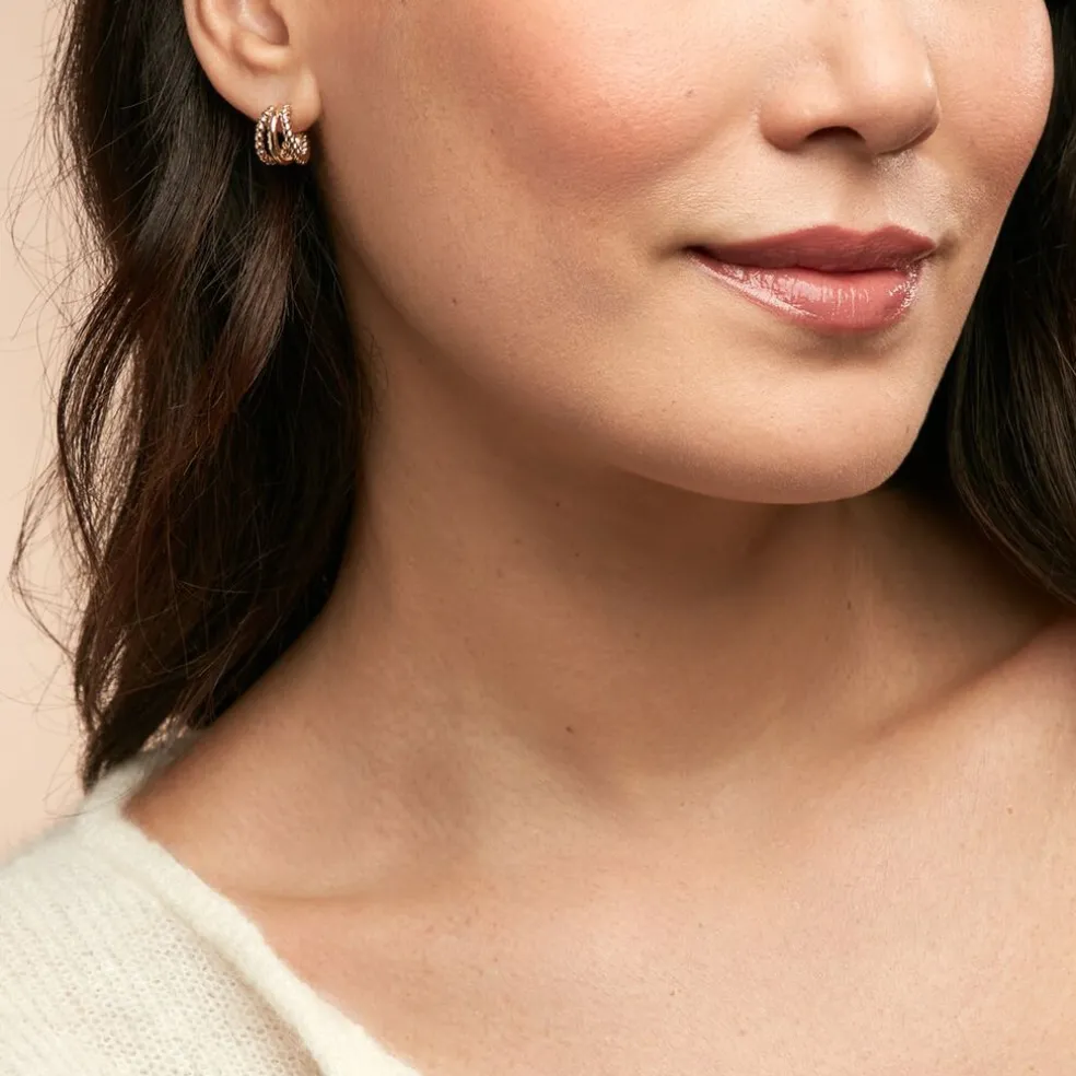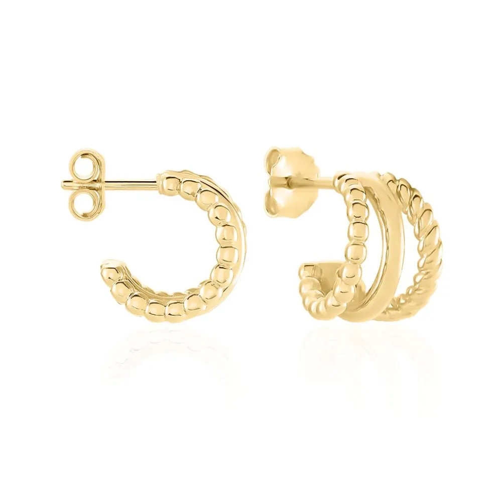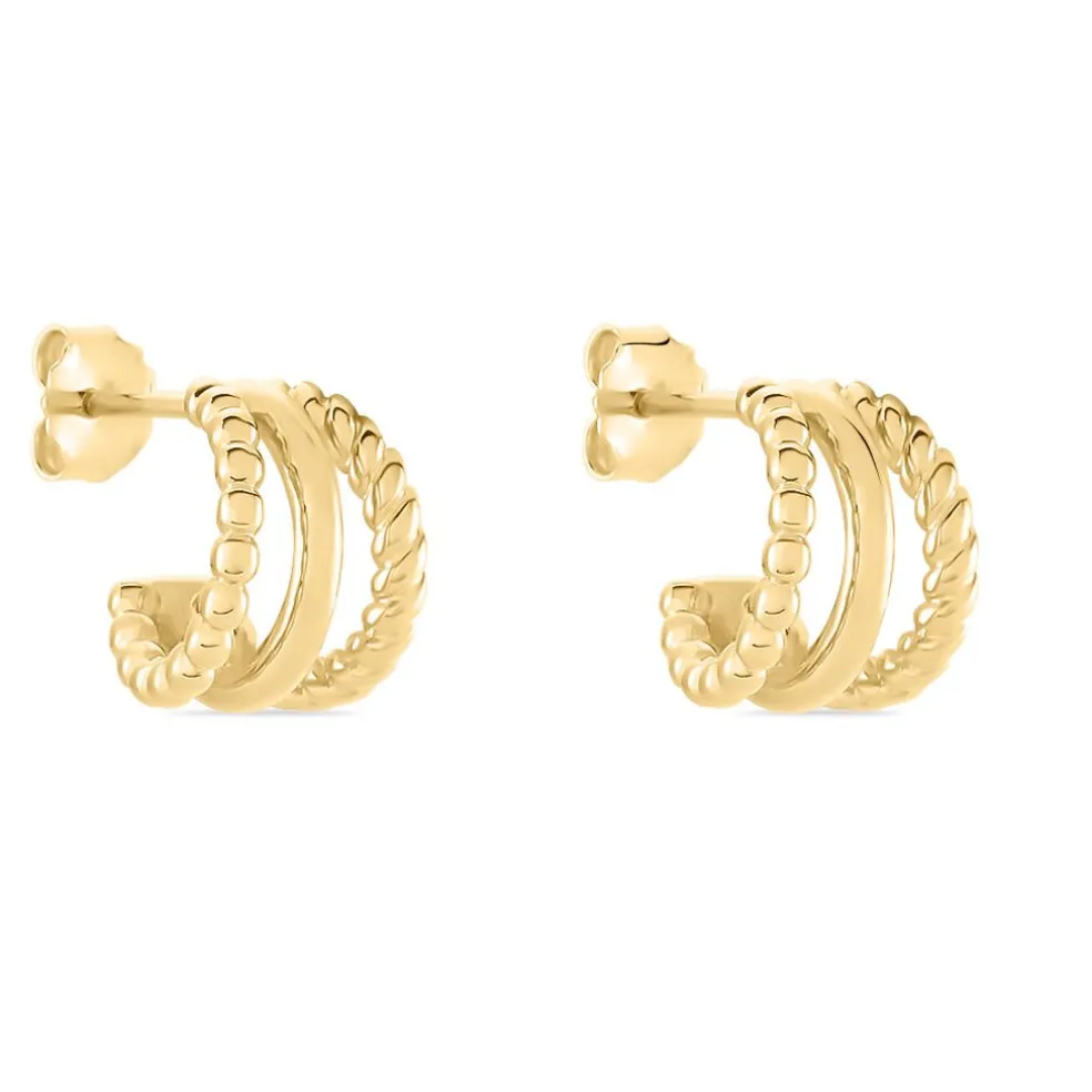Créoles Plaqué Or Jaune Triple Rangs Torsadés Et Lisses Diamètre 9mm