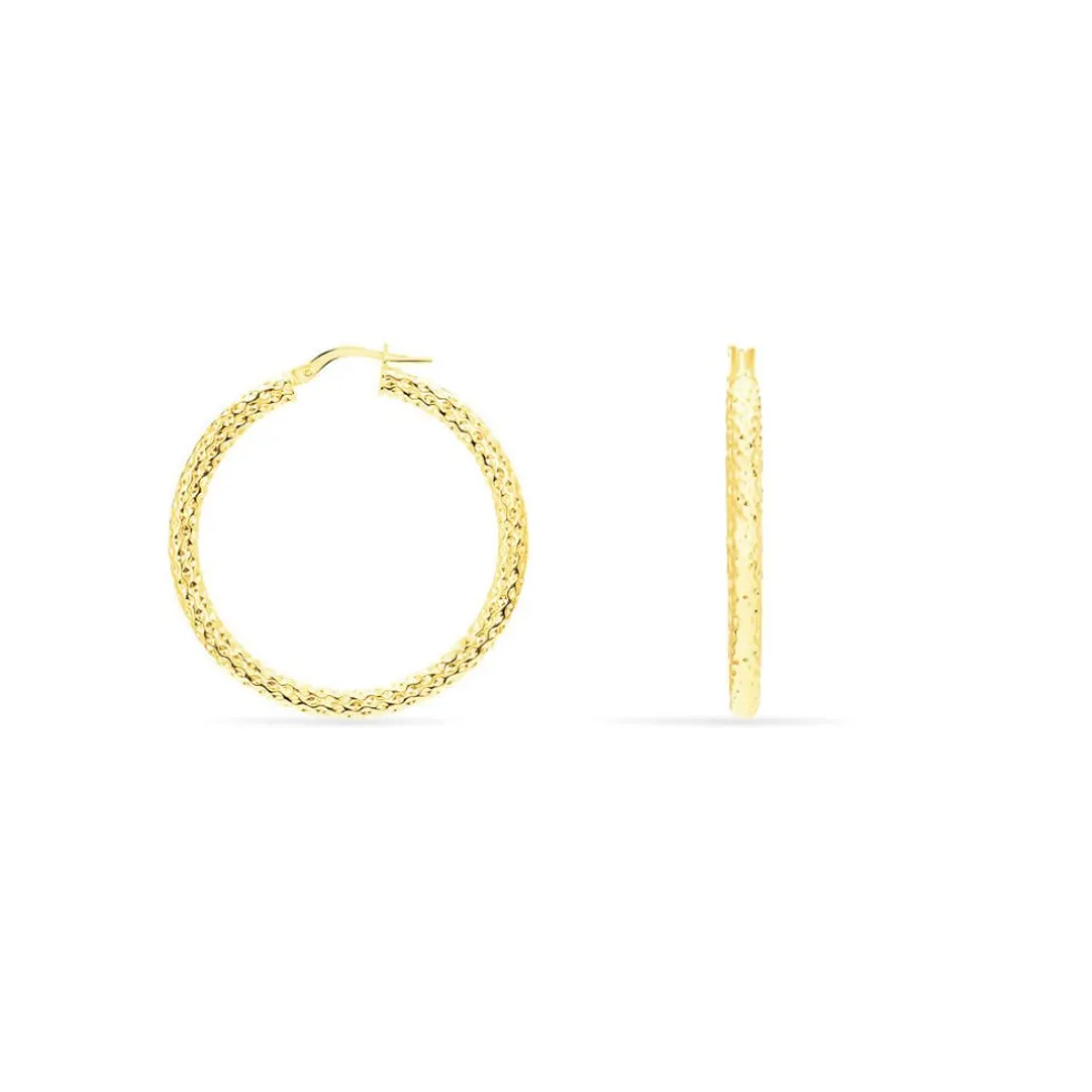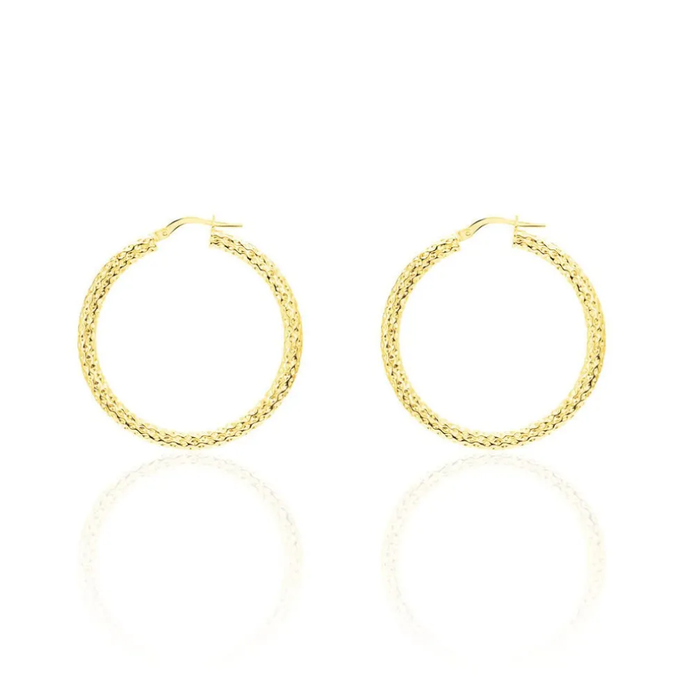 Créoles Or Jaune 375/1000 Fil Rond Martele Largeur 3mm Diamètre 30mm