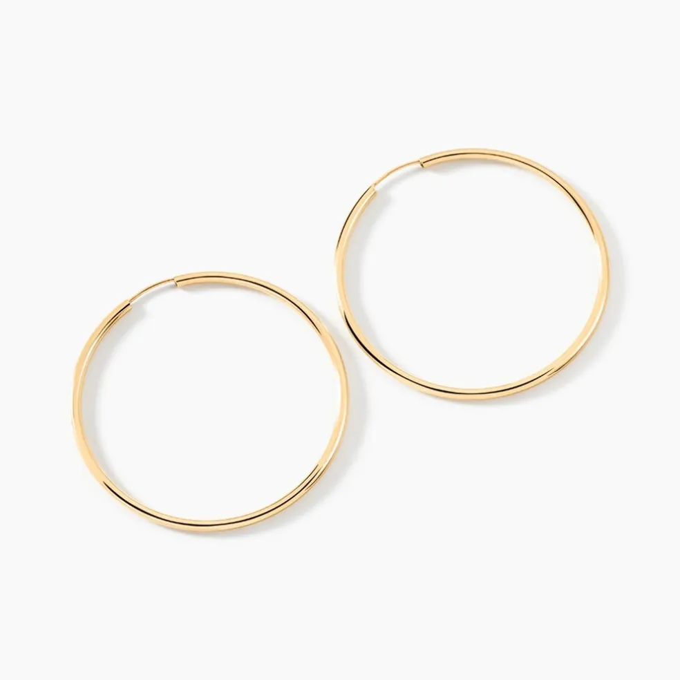 Créoles Or Jaune 750/1000 Fil Flexible Lisse Largeur 1.6mm Diamètre 40mm