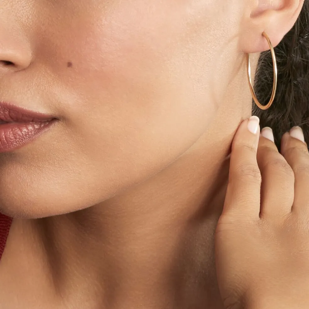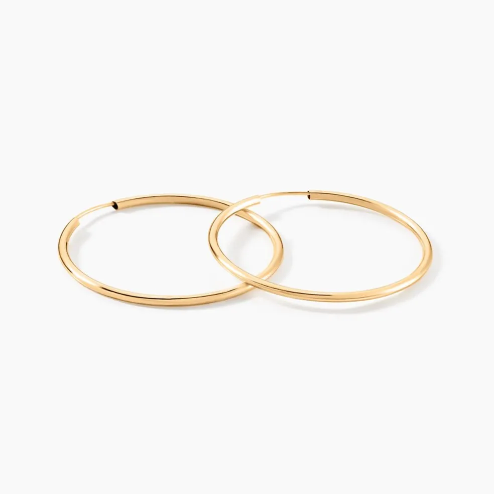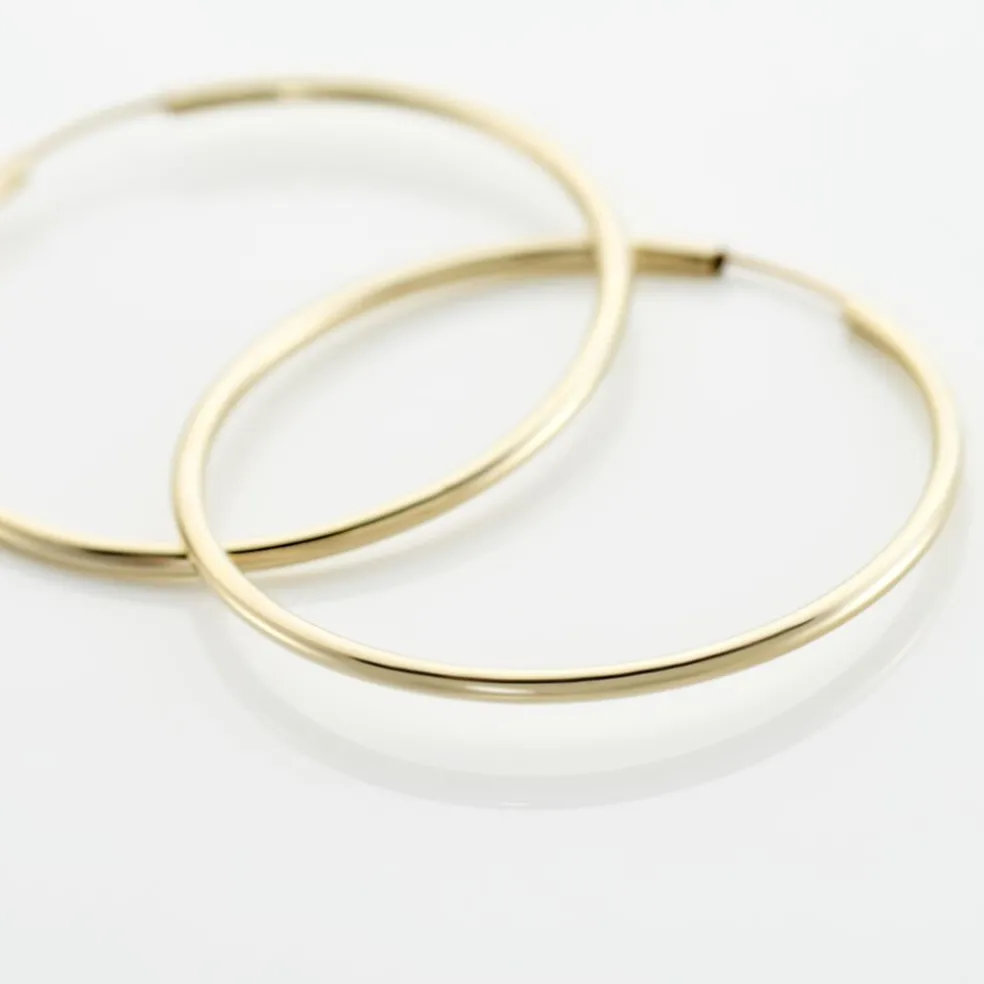 Créoles Or Jaune 375/1000 Fil Flexible Lisse Largeur 1.6mm Diamètre 35mm