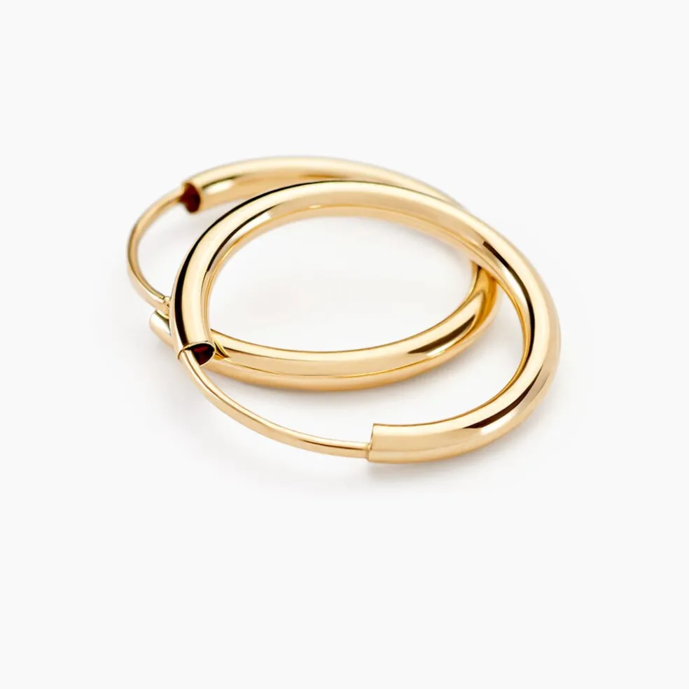 Creoles Or Jaune 750/1000 Fil Rond Lisses Diametre 15mm