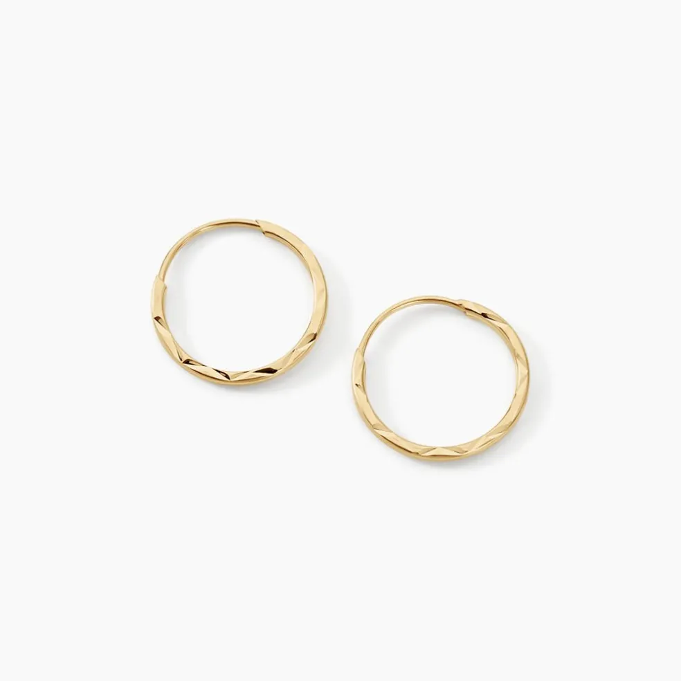 Creoles Or Jaune 750/1000 Fil Plat Ciselees Largeur 1mm Diametre 12mm