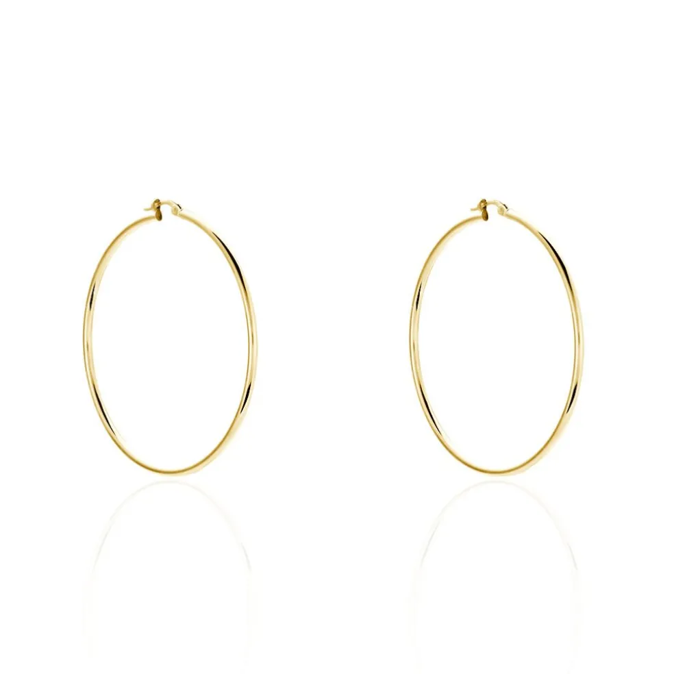 Créoles Or Jaune 750/1000 Fil Rond Lisse Largeur 2mm Diamètre 50mm