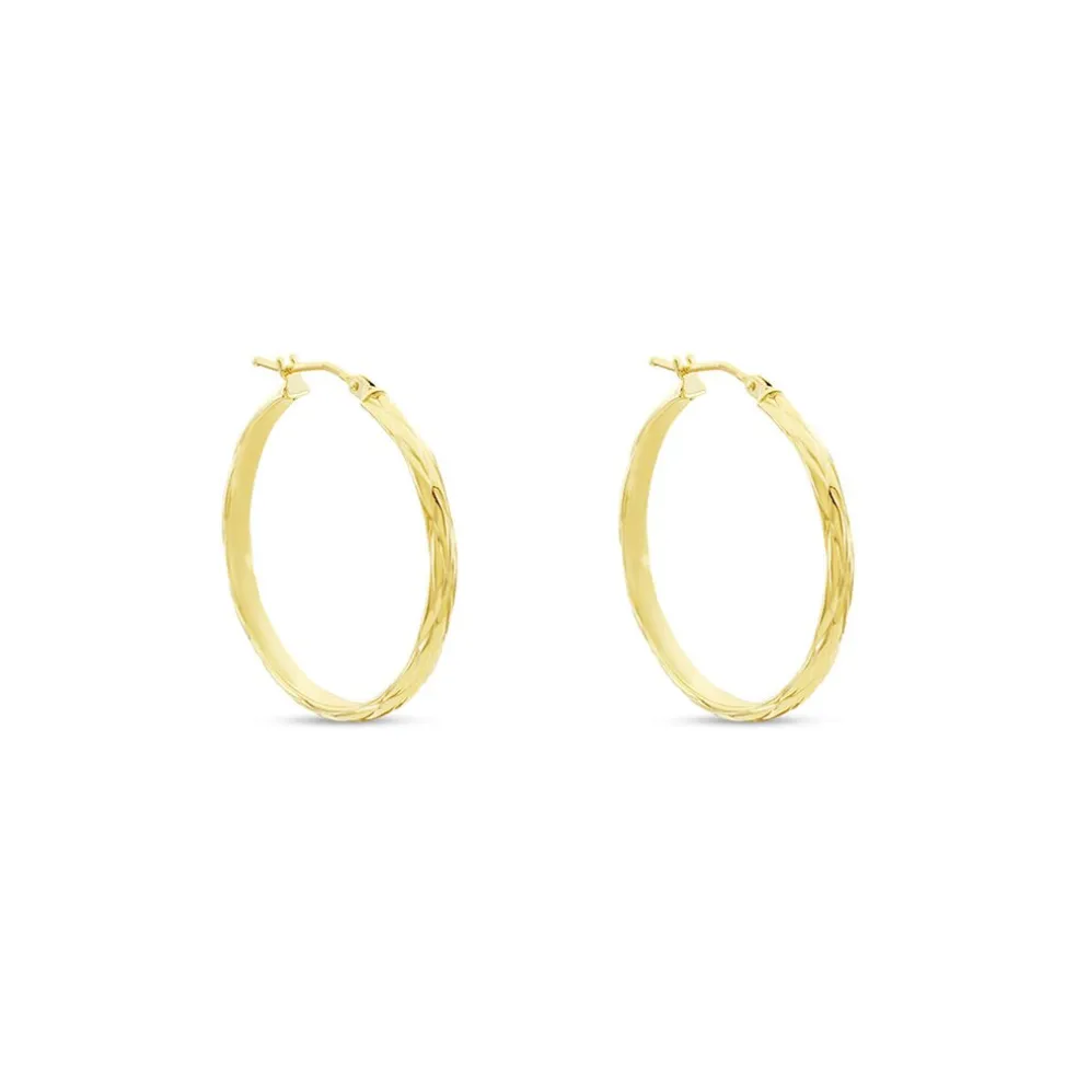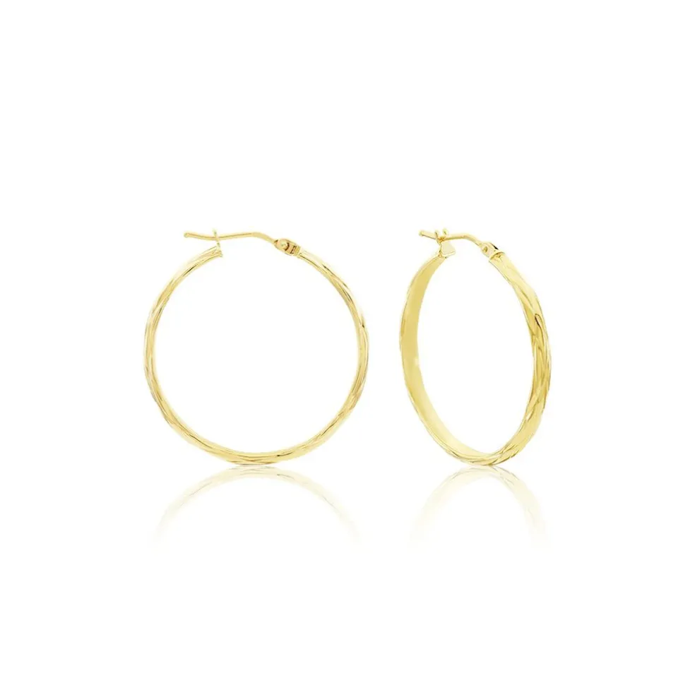 Créoles Or Jaune 375/1000 Demi Jonc Effet Diamanté épaisseur 2.5mm Diamètre 20mm