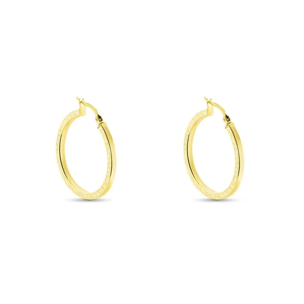 Créoles Or Jaune 375/1000 Fil Carré Grec Largeur 2mm Diamètre 20mm