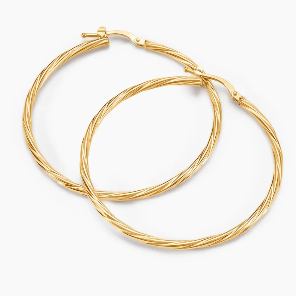 Créoles Or Jaune 375/1000 Fil Rond Torsadé Largeur 2mm Diamètre 40mm