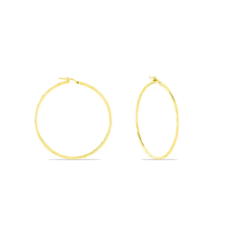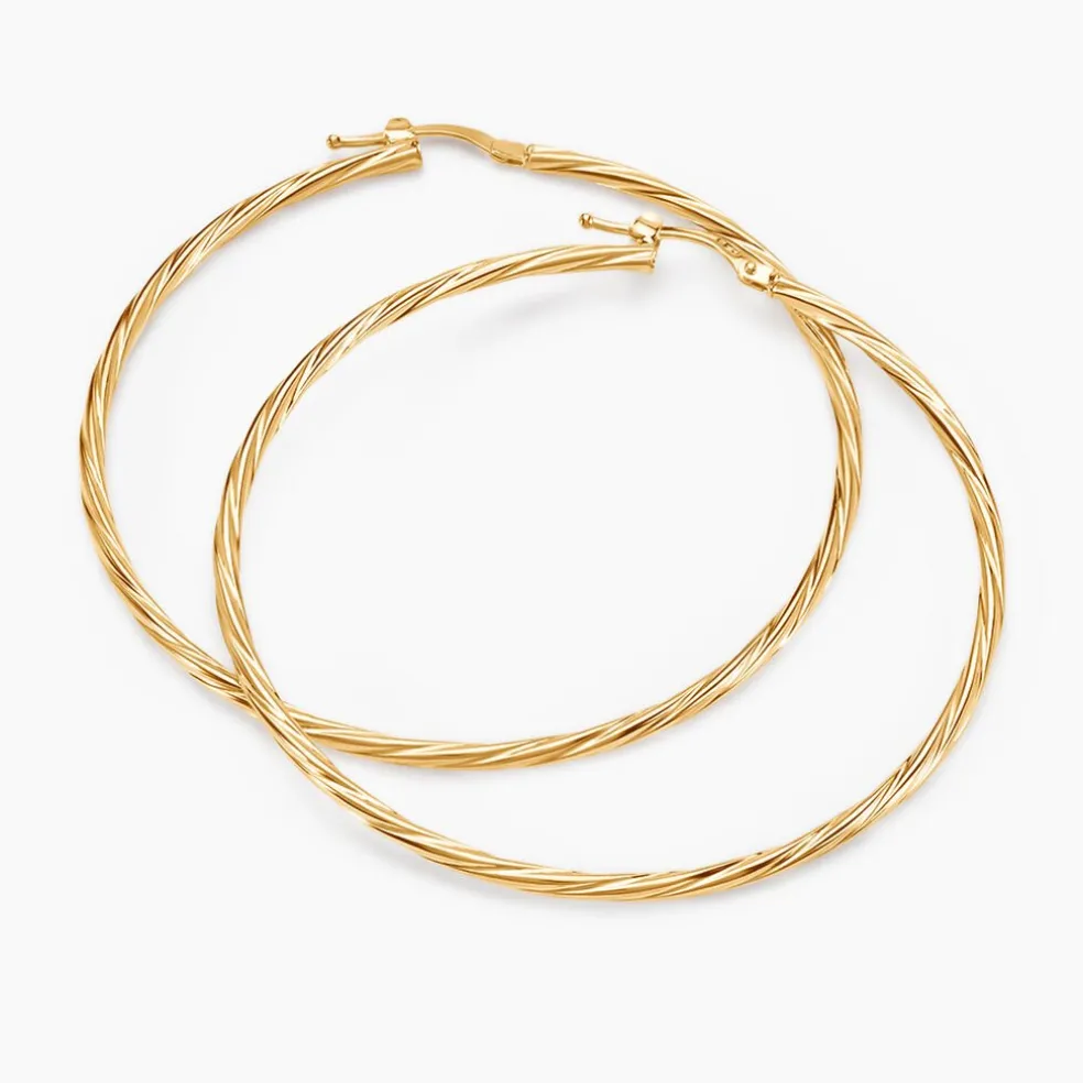 Créoles Or Jaune 375/1000 Fil Rond Torsadé Largeur 2mm Diamètre 50mm