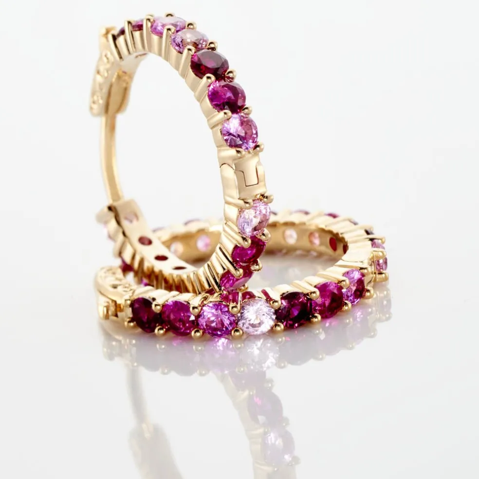 Creoles Plaqué Or Jaune Pierres Roses Diametre 15mm