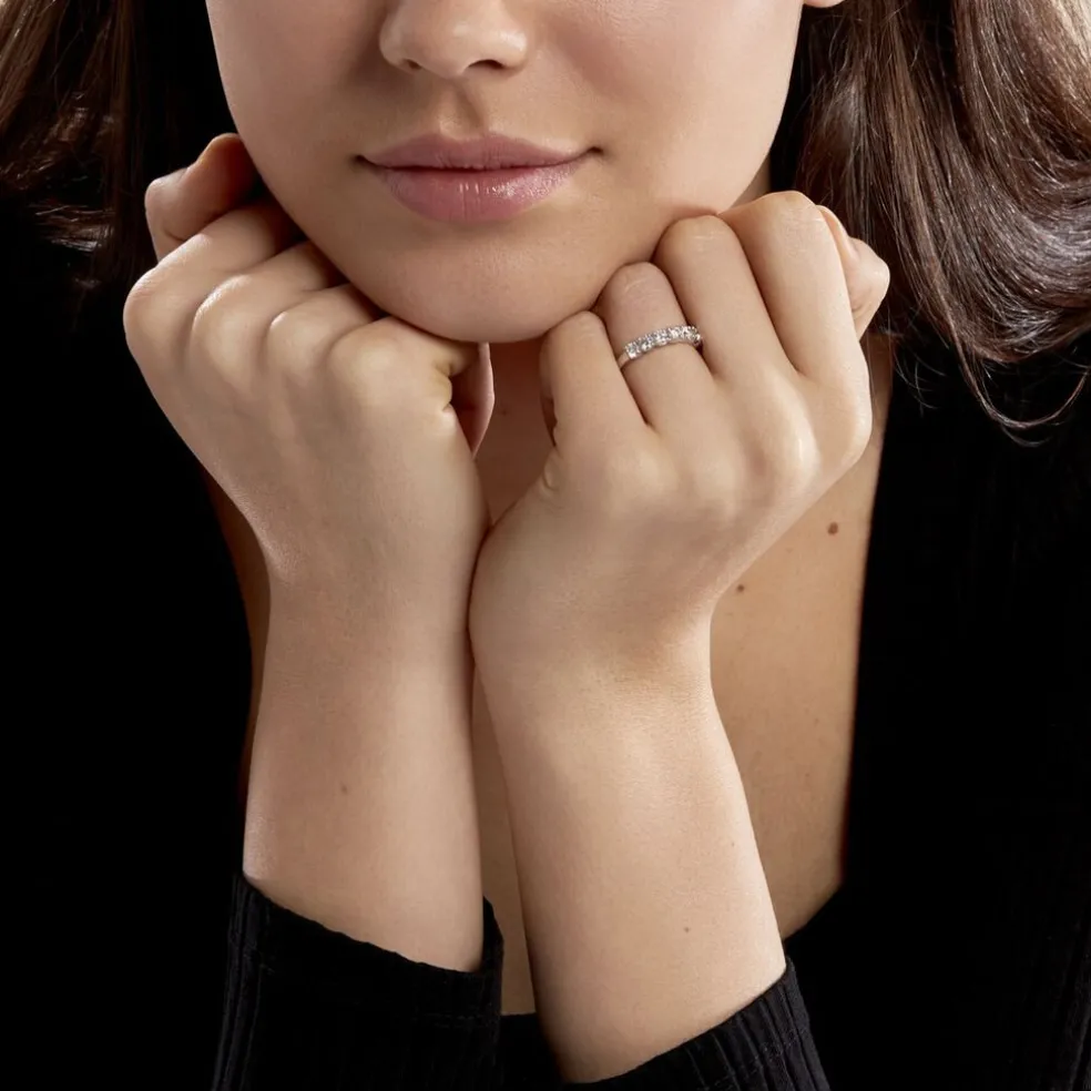 Demi-alliance Or Blanc 750/1000 Diamants Synthétique 1.00cts Sertis Griffes