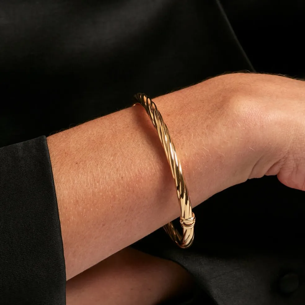 Bracelet Jonc Or Jaune 375/1000 Fil Torsadé Diamètre 60*52mm