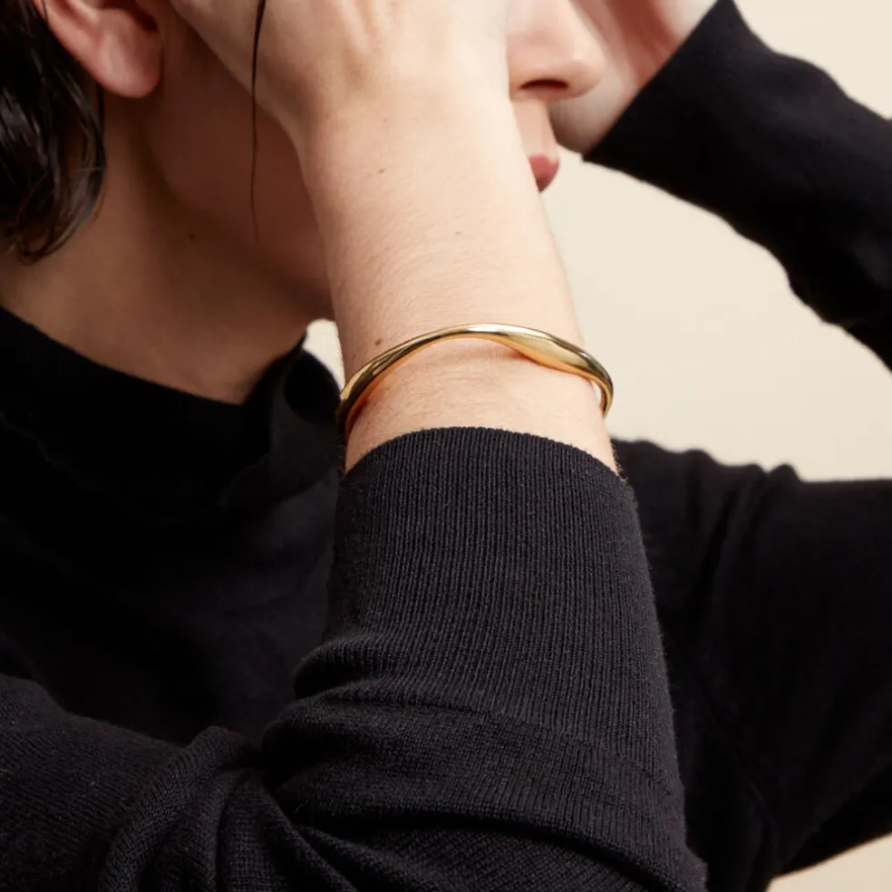 Bracelet Jonc Ouvert Acier Inoxydable Jaune Forme Organique Diamètre 60mm
