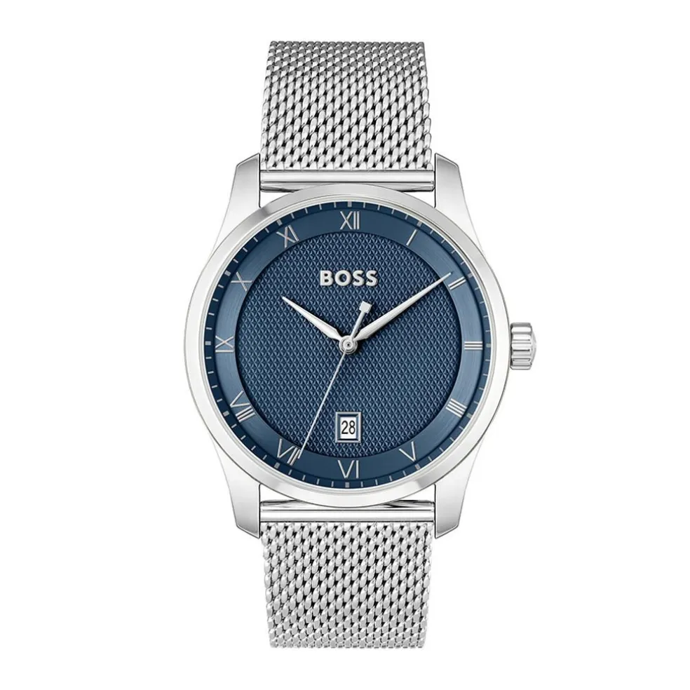 Montre Boss Principle Acier Argente Rond Quartz 41mm Fond Bleu Bracelet Acier Milanais Argente 1514115