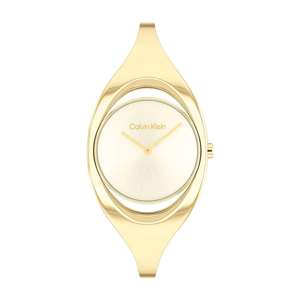 Montre Calvin Klein Elated Boitier Acier Dore Rond 30mm Quartz Fond Champagne Bracelet Acier Dore 25200422