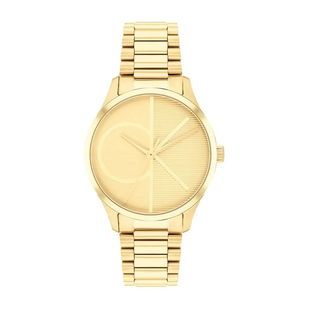 Montre Calvin Klein Iconic Boitier Acier Dore Rond 32mm Quartz Fond Dore Bracelet Acier Dore 25200346