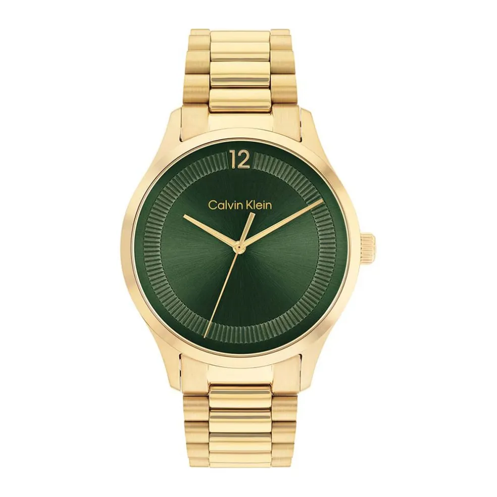 Montre Calvin Klein Iconic Acier Doré Ronde Quartz 40mm Fond Vert Bracelet Acier Doré 25200229