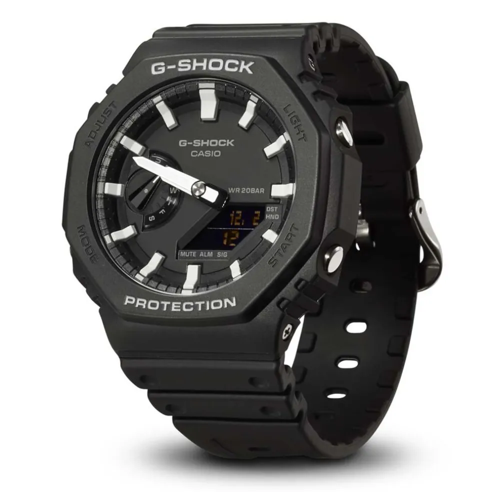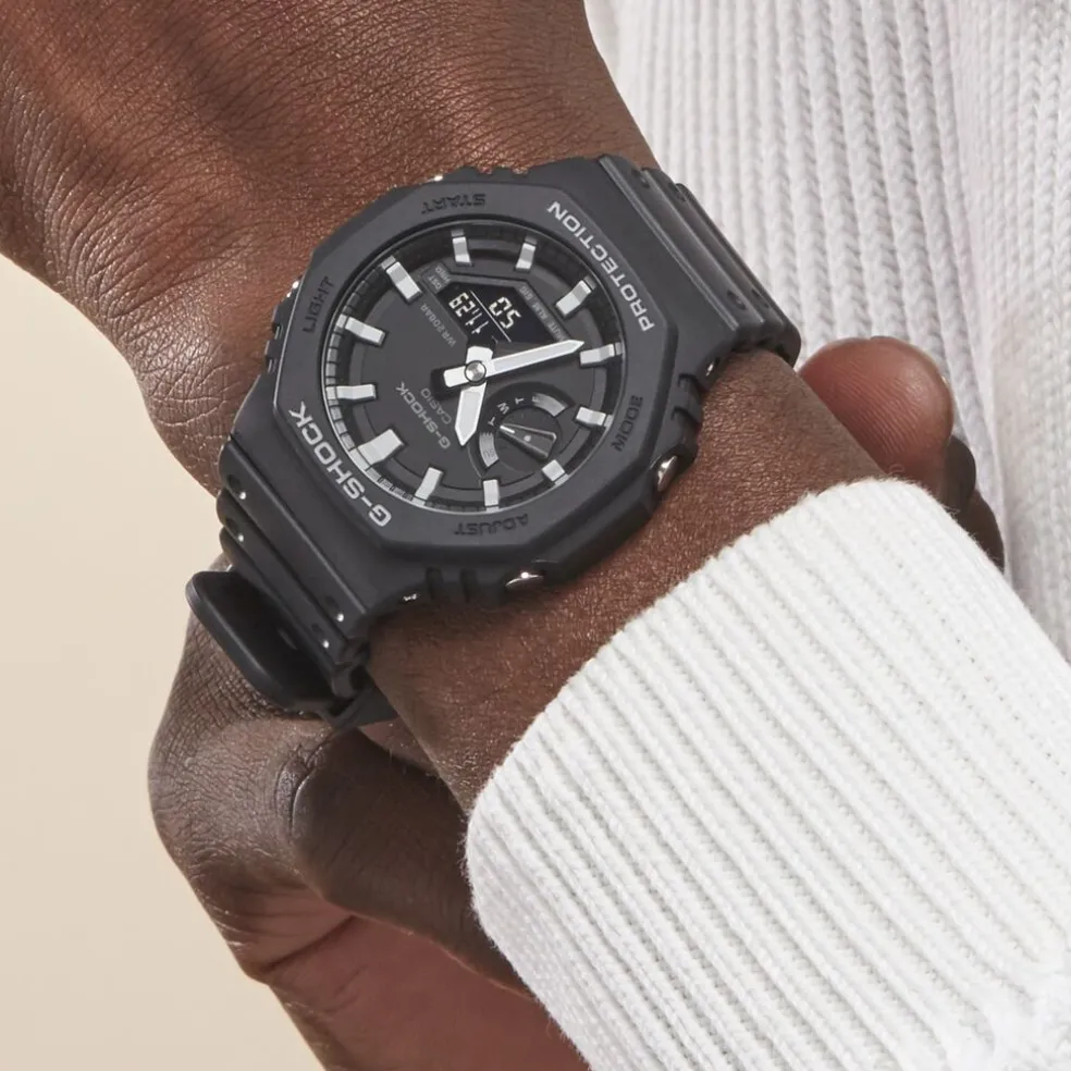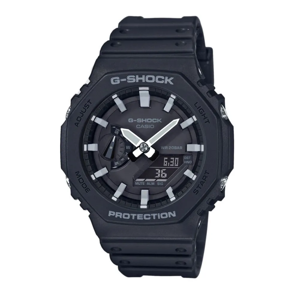 Montre Casio G-shock Classic Resine Noire Ronde Quartz 48.5mm Fond Noir Et Index Argenté Bracelet Resine Noire Ga-2100-1aer